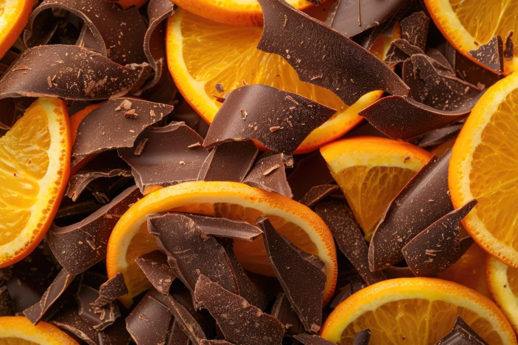 Aksamitna czekolada deserowa z aromatyczną, kandyzowaną skórką pomarańczy. Cytrusowa nuta dodaje lekkości i podkreśla głęboki smak kakao.