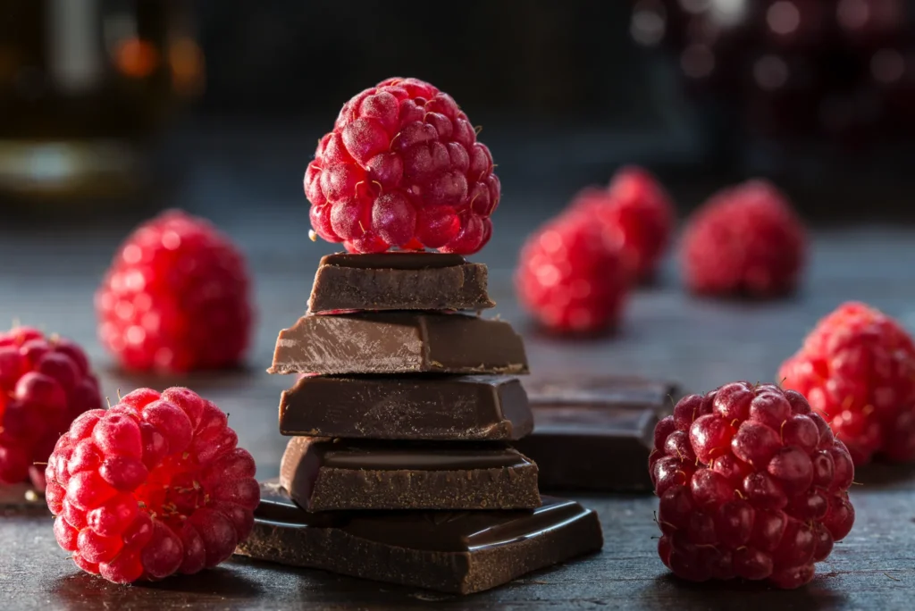 Wyrazista i przepyszna czekolada deserowa z nutą lekko kwaskowych malin. Owocowa świeżość doskonale podkreśla intensywny smak kakao.